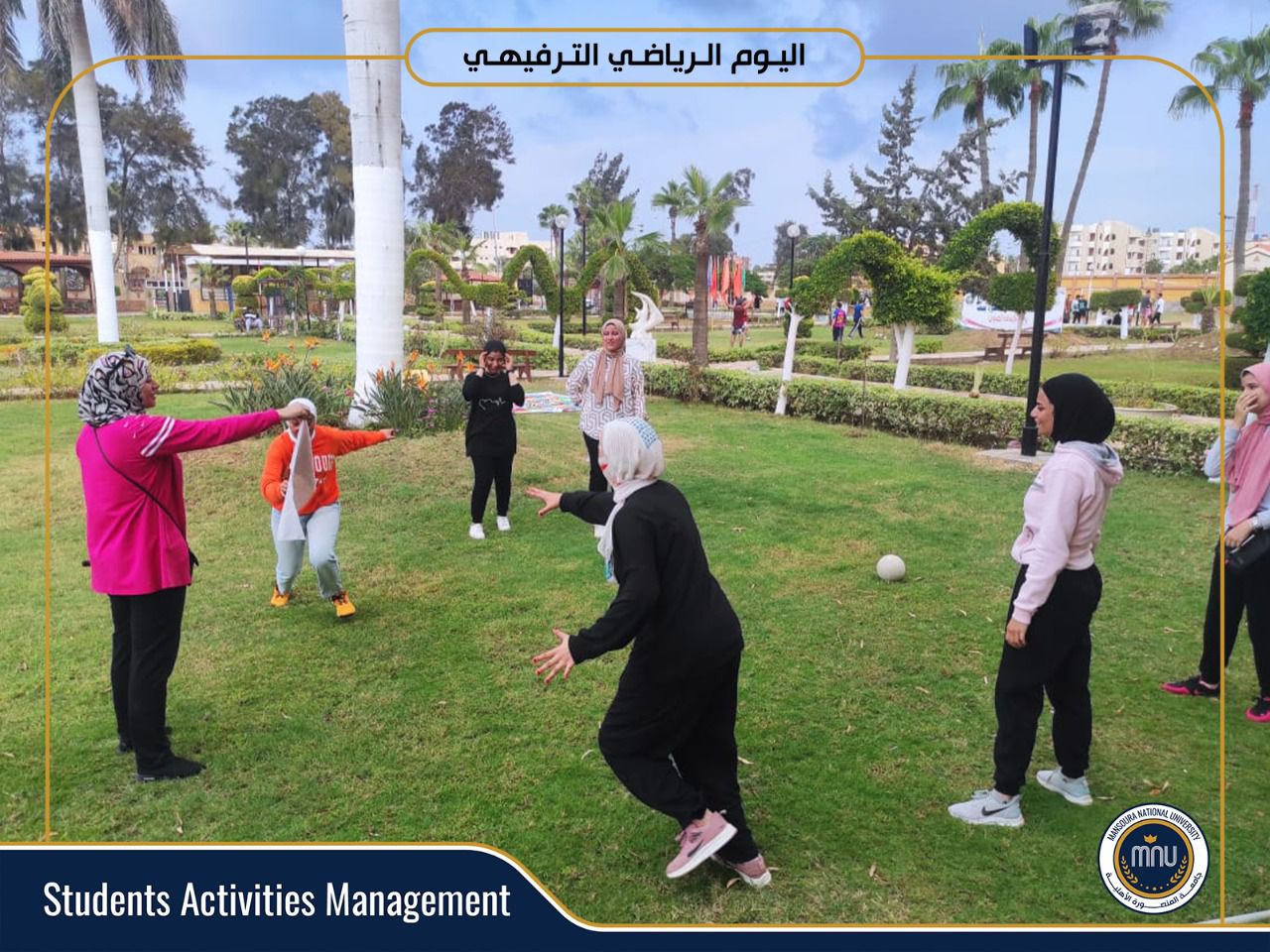 وتأكد ادارة الجامعة على استمرار تنظيم تلك الفعاليات على مدار العام، وذلك حرصا على مشاركة أكبر عدد من طلاب الكلية في الأنشطة المختلفة، وضمت فعاليات اليوم العديد من الأنشطة الرياضية والترويحية حيث شارك في تلك الفعاليات عدد كبير من الطلبة والطالبات.