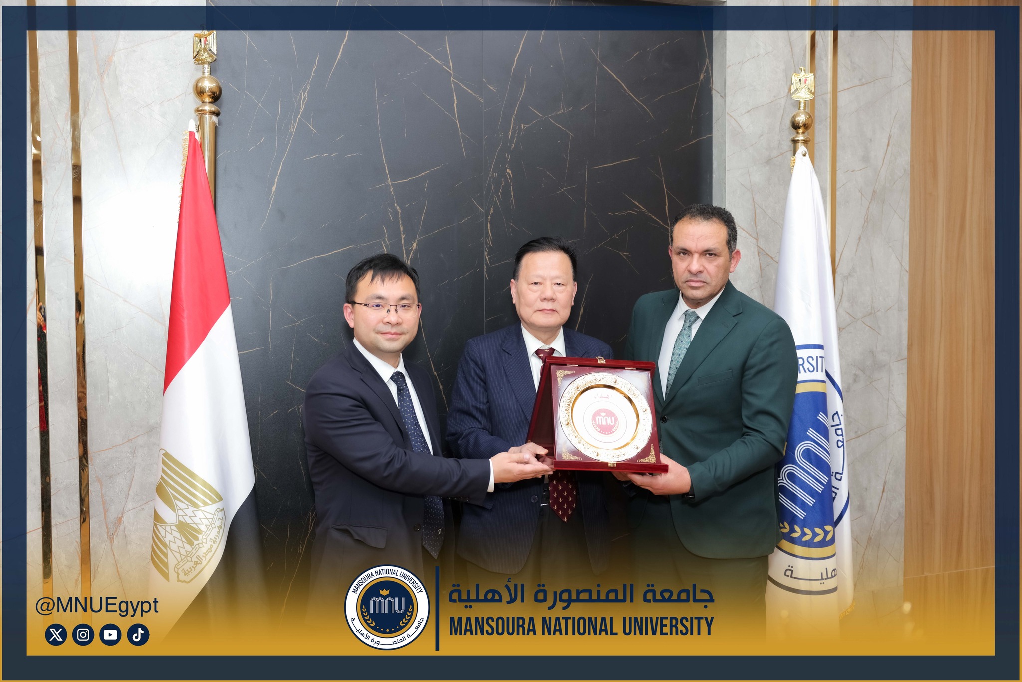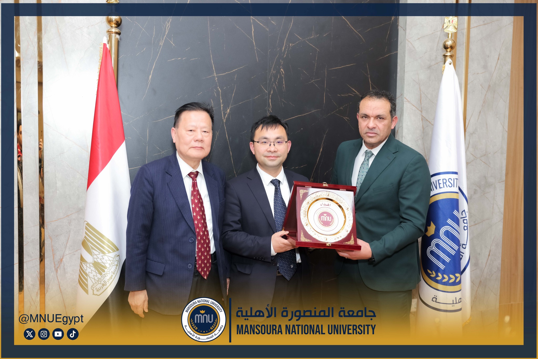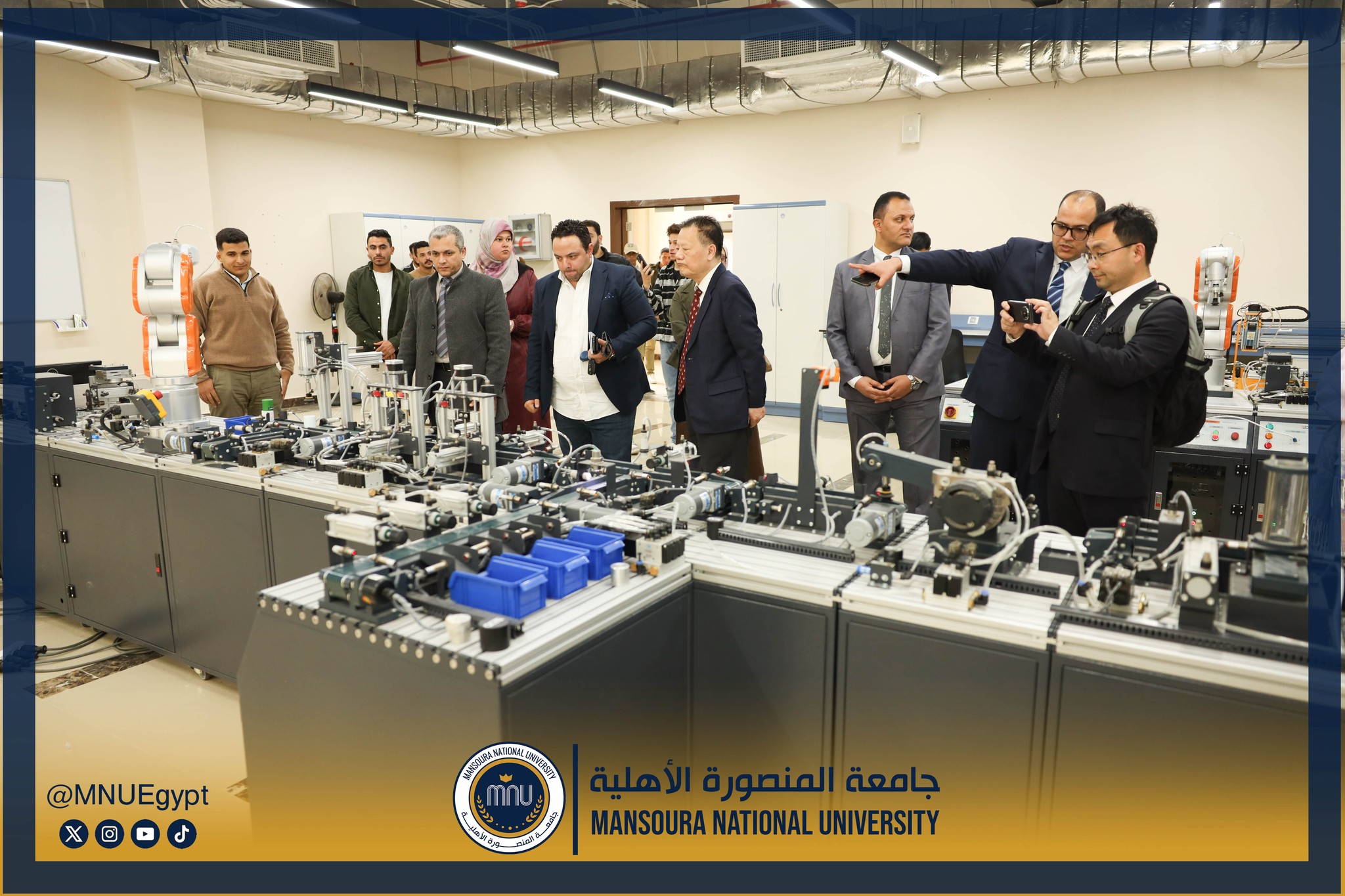 استقبلت جامعة المنصورة الأهلية برئاسة الأستاذ الدكتور محمد عبد العظيم رئيس الجامعة، وفدًا صينيًا رفيع المستوى، وذلك في إطار تعزيز التعاون الدولي وبحث أوجه الشراكة الأكاديمية والبحثية بين الجانبين، بحضور السادة عمداء الكليات ومديري البرامج، بحضور كل من الأستاذة الدكتورة رشا بروة، عميد كلية تكنولوجيا العلوم الصحية، الأستاذة الدكتورة رئيفة علام، عميد كلية التمريض، الأستاذة الدكتورة أميرة طمان، القائم بعمل عميد كلية الطب، الأستاذة الدكتورة نهى الوصيفي، القائم بعمل عميد كلية طب الأسنان، الأستاذ الدكتور أحمد الشيخ، القائم بعمل عميد كلية للصيدلة، الأستاذ الدكتور إيهاب عبد الحي، القائم بعمل عميد كلية الهندسة، الدكتور نبيل عرفات، مدير برامج كلية الاقتصاد والعلوم الإدارية،
