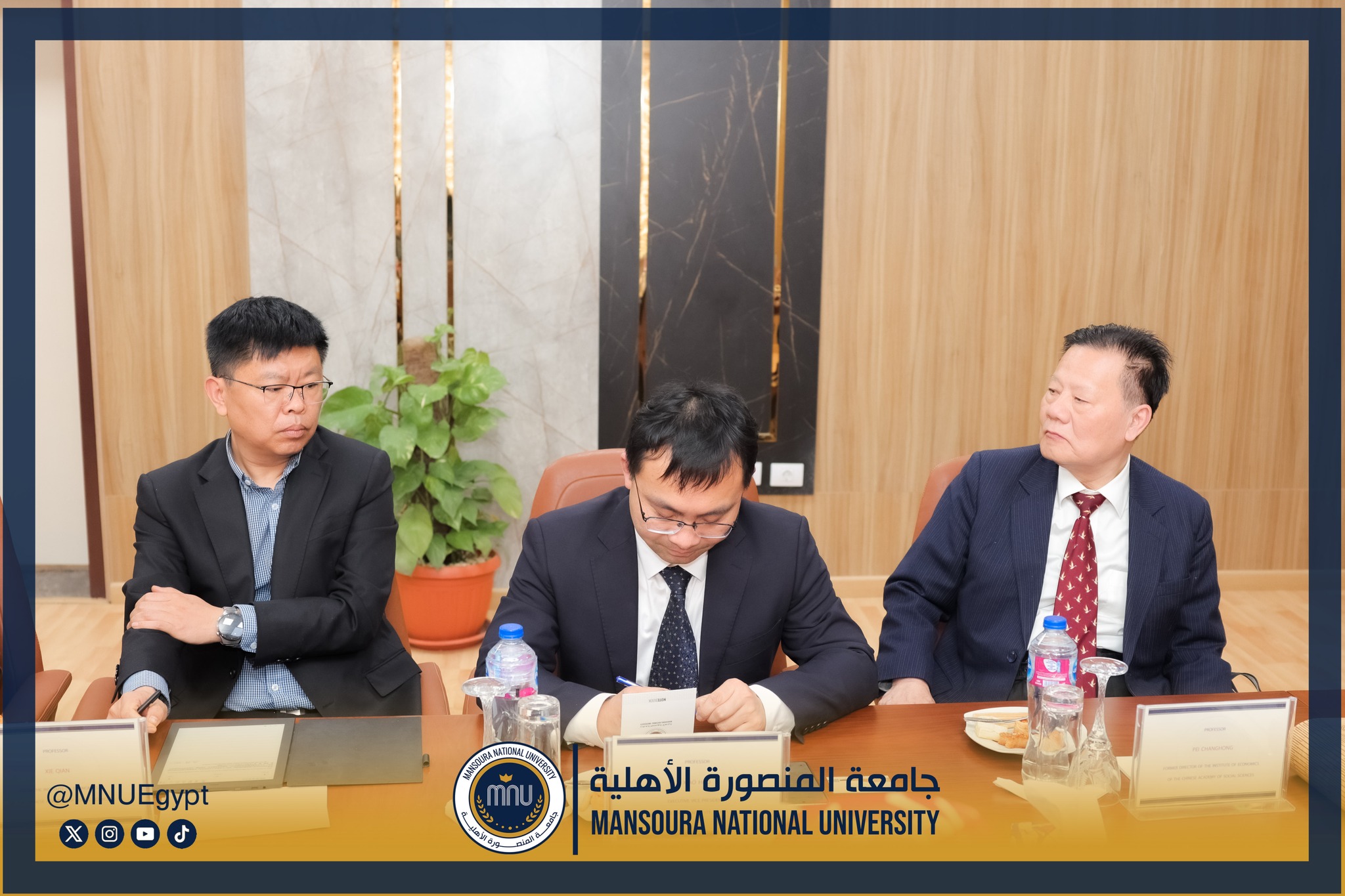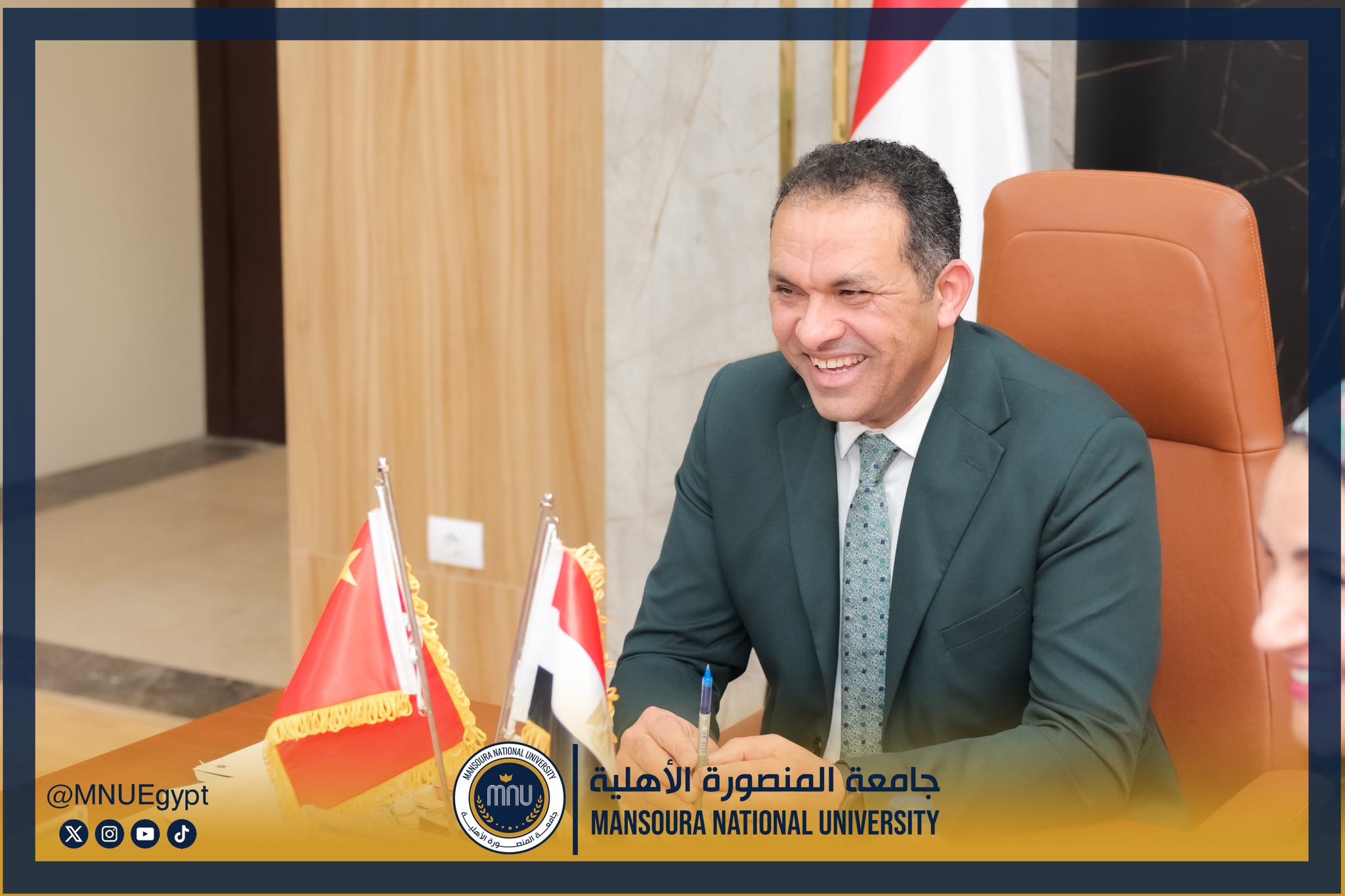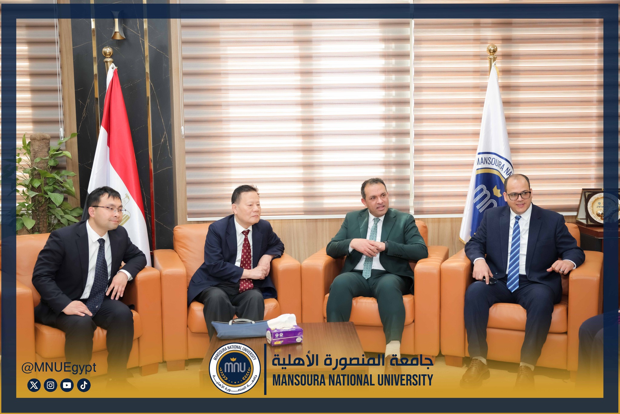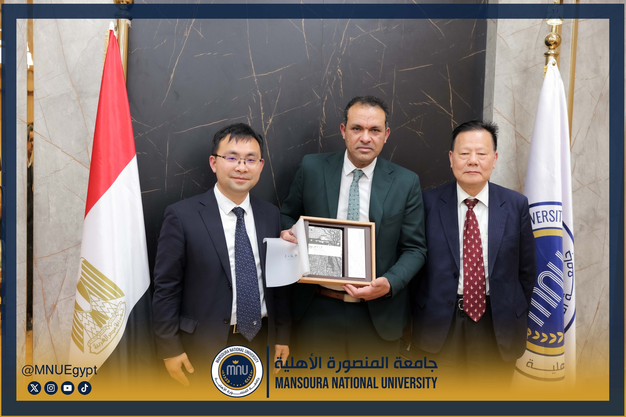 استقبلت جامعة المنصورة الأهلية برئاسة الأستاذ الدكتور محمد عبد العظيم رئيس الجامعة، وفدًا صينيًا رفيع المستوى، وذلك في إطار تعزيز التعاون الدولي وبحث أوجه الشراكة الأكاديمية والبحثية بين الجانبين، بحضور السادة عمداء الكليات ومديري البرامج، بحضور كل من الأستاذة الدكتورة رشا بروة، عميد كلية تكنولوجيا العلوم الصحية، الأستاذة الدكتورة رئيفة علام، عميد كلية التمريض، الأستاذة الدكتورة أميرة طمان، القائم بعمل عميد كلية الطب، الأستاذة الدكتورة نهى الوصيفي، القائم بعمل عميد كلية طب الأسنان، الأستاذ الدكتور أحمد الشيخ، القائم بعمل عميد كلية للصيدلة، الأستاذ الدكتور إيهاب عبد الحي، القائم بعمل عميد كلية الهندسة، الدكتور نبيل عرفات، مدير برامج كلية الاقتصاد والعلوم الإدارية،