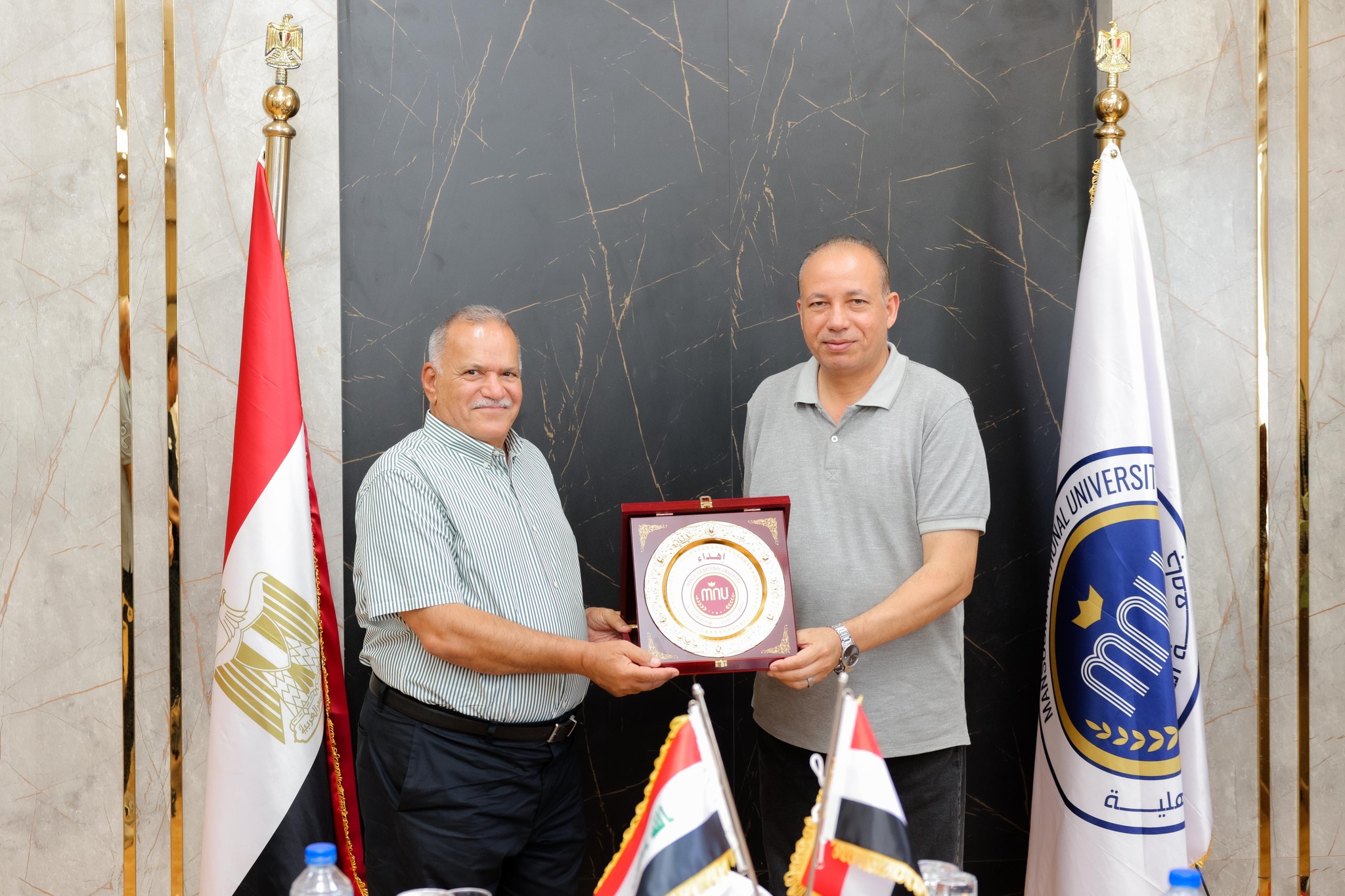 في مستهل اللقاء، رحب الأستاذ الدكتور شريف خاطر بالوفد العراقي، مؤكدًا على عمق الروابط والعلاقات بين الشعبين الشقيقين المصري والعراقي مشيرًا إلى اعتزاز جامعة المنصورة الأهلية بانفتاحها على التعاون الإقليمي والدولي، وأكد على أهمية التعاون بين جامعة المنصورة الأهلية وجامعة المستقبل والتي تعد نموذج للتكامل بين الجامعات العربية في مجال التعليم العالي والبحث العلمي، وأوضح أن جامعة المنصورة الأهلية تعد إحدى جامعات الجيل الرابع التي تم إنشاؤها بتوجيهات من فخامة الرئيس عبد الفتاح السيسي رئيس الجمهورية، لتكون نموذجًا متطورًا للتعليم الجامعي يواكب احتياجات سوق العمل المحلي والإقليمي والدولي، ثم استعرض أبرز الإمكانيات المادية والبشرية والبنية التحتية والتكنولوجية التي تمتلكها الجامعة، وما تتضمنه من معامل متخصصة مجهزة بأحدث الأجهزة والوسائل التعليمية، وأشار إلى تميز الجامعة في البحث العلمي وقد أدرجت في تصنيف التايمز العالمي رغم حداثة إنشائها لأول مرة بين الجامعات الأهلية، كما أشار إلى انضمامها إلى اتحاد الجامعات العربية.