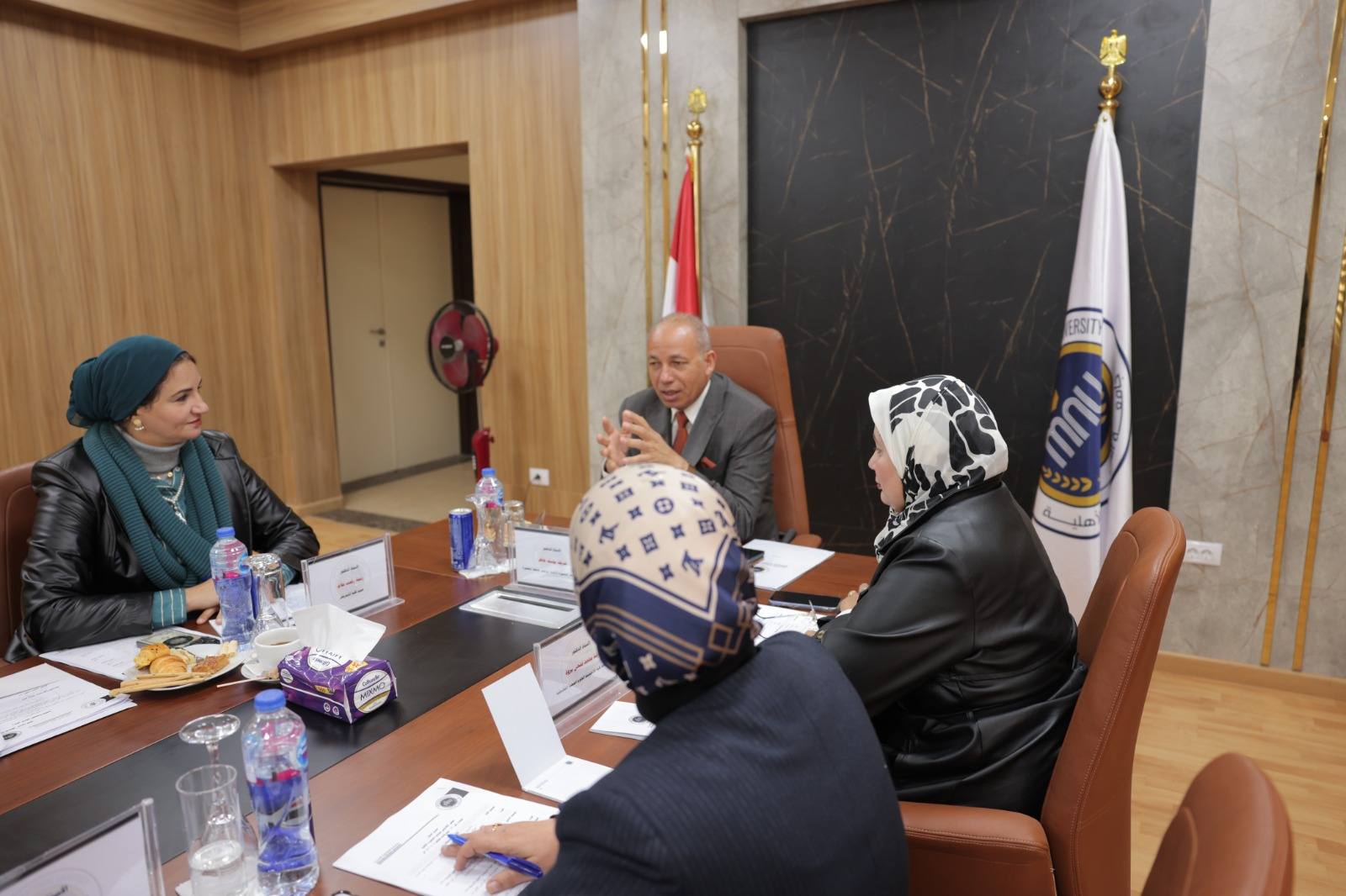 وعُقدت الجلسة بحضور كل من الأستاذة الدكتورة رشا بروة، عميد كلية تكنولوجيا العلوم الصحية، الأستاذة الدكتورة رئيفة علام، عميد كلية التمريض، الأستاذ الدكتور أحمد الشيخ، القائم بعمل عميد كلية الصيدلة، الأستاذ الدكتور إيهاب عبد الحي، القائم بعمل عميد كلية الهندسة، الأستاذة الدكتورة أميرة طمان، مدير برنامج الطب والجراحة بكلية الطب، الأستاذة الدكتورة نهى الوصيفي، مدير برنامج طب وجراحة الفم والأسنان بكلية طب الأسنان، الدكتور نبيل عرفات، مدير برامج كلية الاقتصاد والعلوم الإدارية، الأستاذ أسامة موسى، المشرف العام على مقر الجامعة، الأستاذ مجدي فريد، المشرف على الشئون المالية، الأستاذ أحمد نظير، المشرف على المكتب الفني لرئيس الجامعة، الأستاذ ناصر اللوزي، مدير المشتريات والمخازن، والأستاذ محمود فرج، مدير شئون التعليم والطلاب.