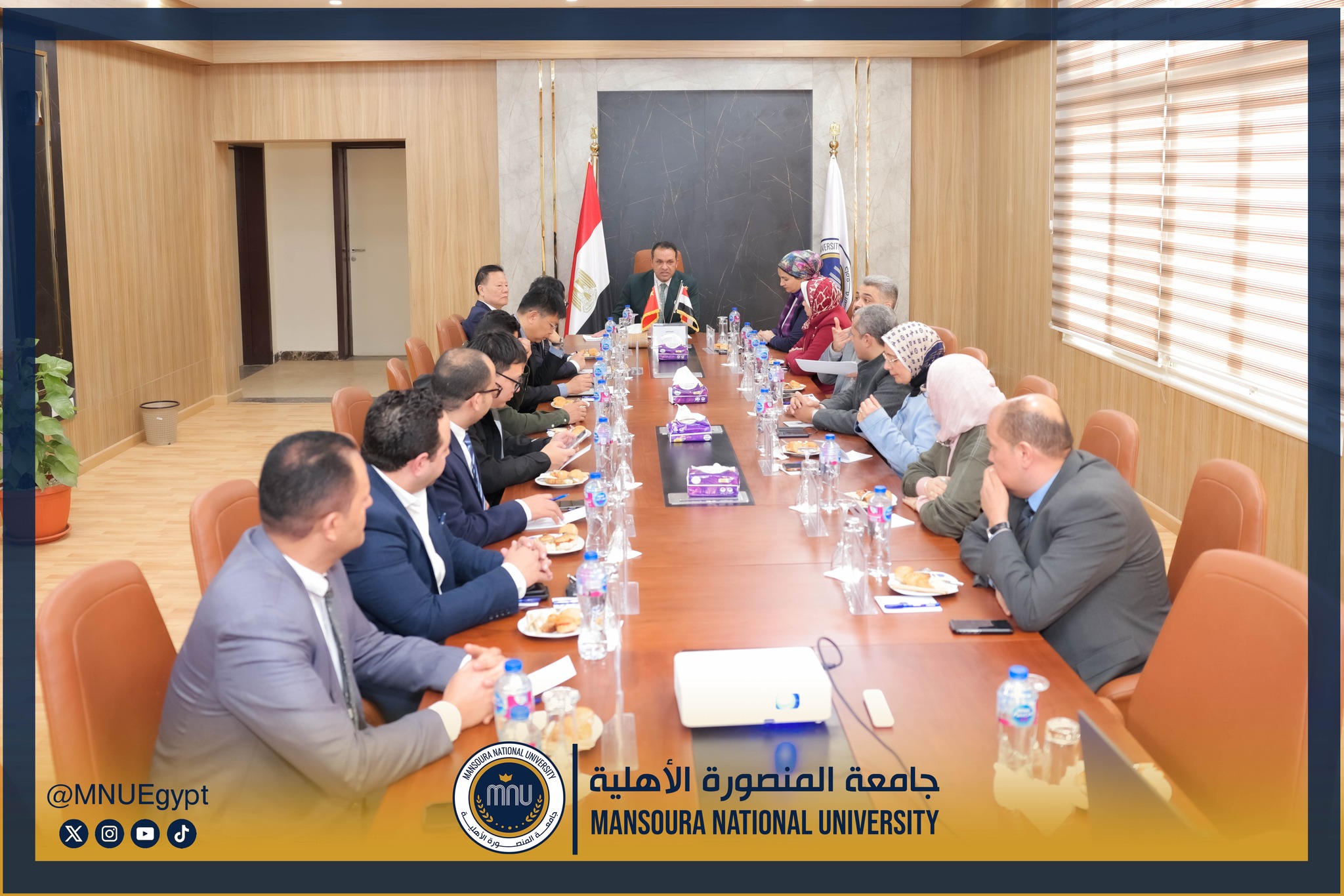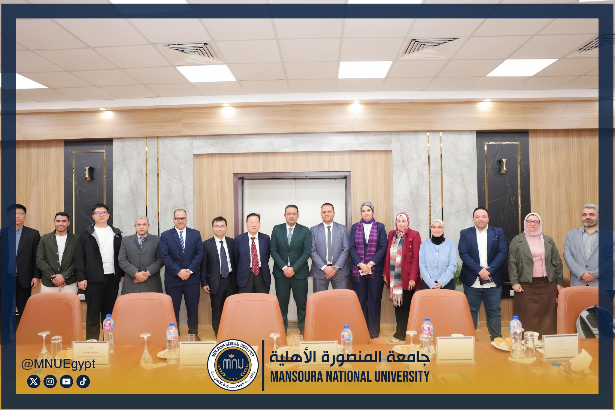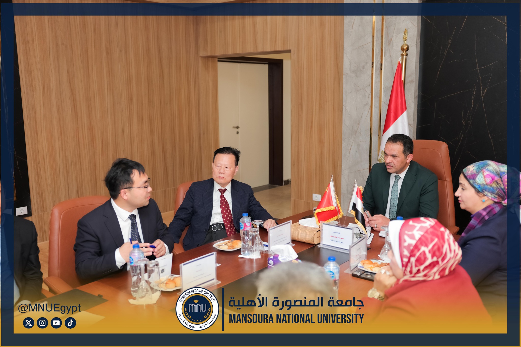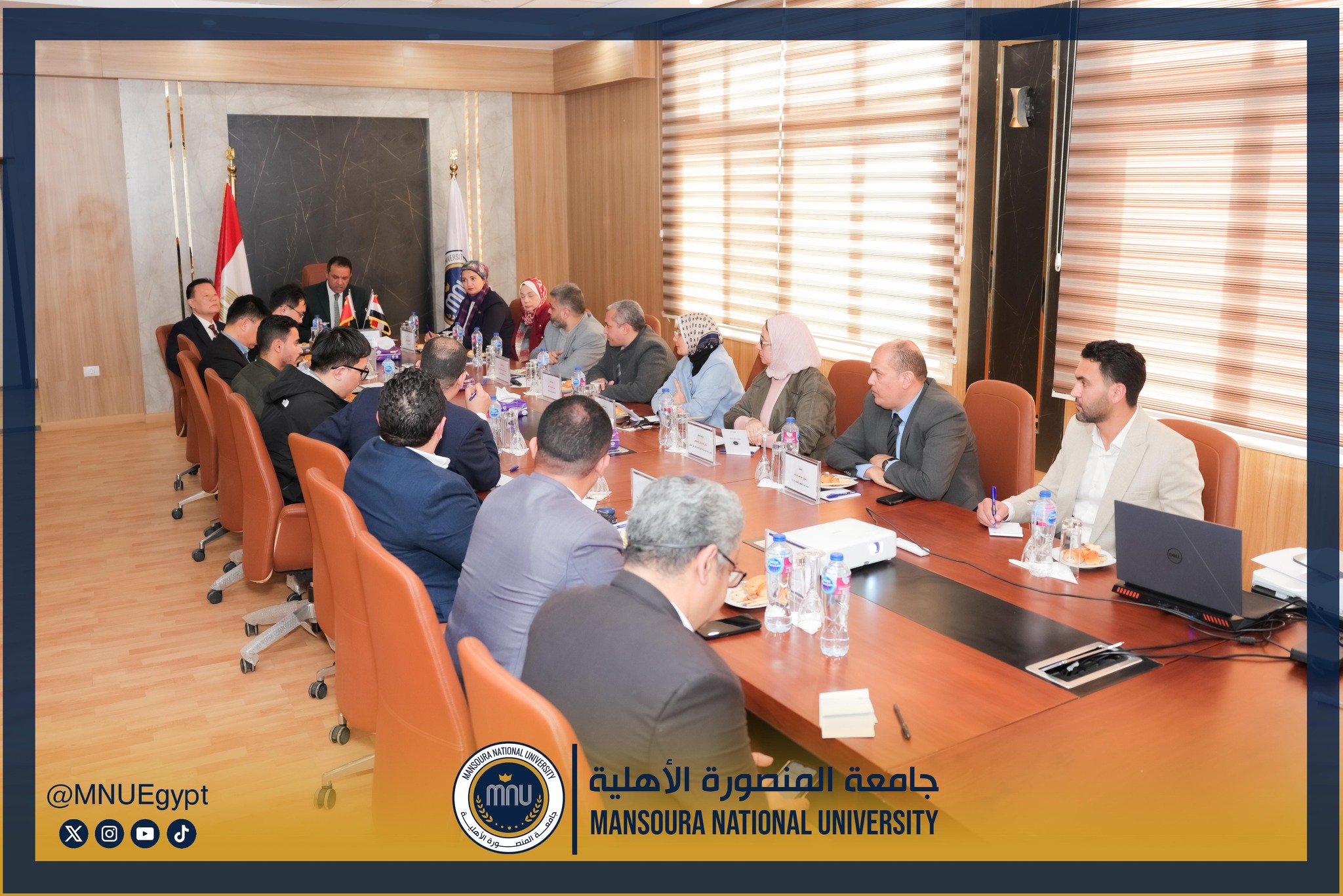 استقبلت جامعة المنصورة الأهلية برئاسة الأستاذ الدكتور محمد عبد العظيم رئيس الجامعة، وفدًا صينيًا رفيع المستوى، وذلك في إطار تعزيز التعاون الدولي وبحث أوجه الشراكة الأكاديمية والبحثية بين الجانبين، بحضور السادة عمداء الكليات ومديري البرامج، بحضور كل من الأستاذة الدكتورة رشا بروة، عميد كلية تكنولوجيا العلوم الصحية، الأستاذة الدكتورة رئيفة علام، عميد كلية التمريض، الأستاذة الدكتورة أميرة طمان، القائم بعمل عميد كلية الطب، الأستاذة الدكتورة نهى الوصيفي، القائم بعمل عميد كلية طب الأسنان، الأستاذ الدكتور أحمد الشيخ، القائم بعمل عميد كلية للصيدلة، الأستاذ الدكتور إيهاب عبد الحي، القائم بعمل عميد كلية الهندسة، الدكتور نبيل عرفات، مدير برامج كلية الاقتصاد والعلوم الإدارية،